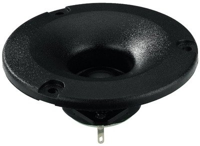 High-power tweeter with coated silk cone and horn front attachment. High efficiency far above average with a very wide bandwidth and a clear radiation. Suitable for universal use, from the HiFi range and party speakers to high-performance car HiFi applications.